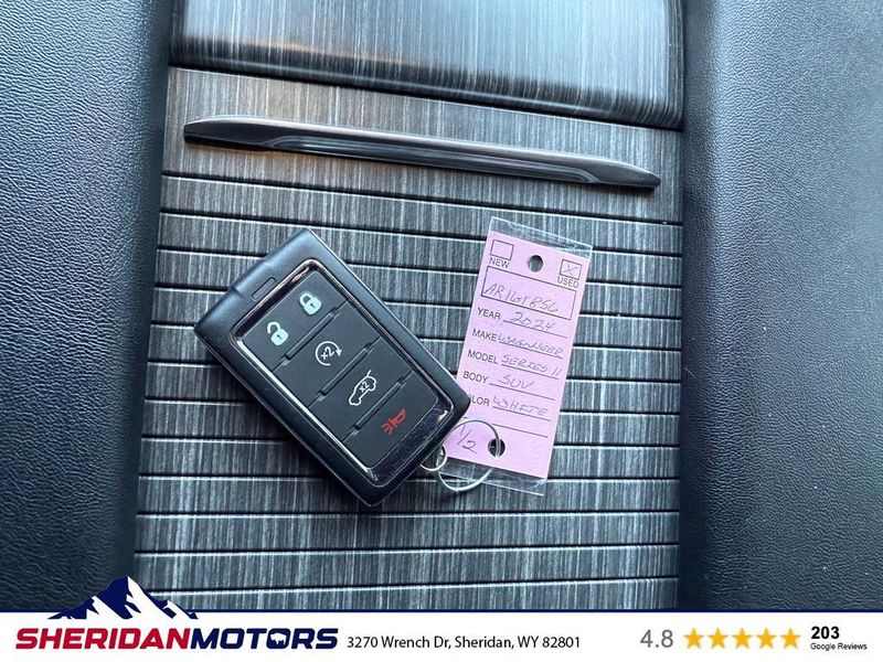 Introducing the 2024 Jeep Wagoneer Series II, a robust and sophisticated SUV designed to elevate your driving experience. This exceptional vehicle, boasting only 25,331 miles, offers a seamless blend of performance, luxury, and advanced technology. Equipped with a powerful 3.0L 6-cylinder engine and four-wheel drive, the Jeep Wagoneer Series II is engineered to conquer diverse terrains while ensuring a smooth and controlled ride. Inside, the cabin exudes comfort and elegance with premium leather seats, providing a luxurious touch for both driver and passengers. Modern technology enhances every journey, with Android Auto and Apple CarPlay integration allowing you to stay connected and entertained effortlessly. Whether navigating city streets or rural landscapes, this SUV promises a commanding presence. This particular Jeep Wagoneer comes with a CARFAX 1-Owner and a CARFAX Clean Report, offering peace of mind and assurance of its pristine condition. Designed for those who demand versatility without compromising style, the 2024 Jeep Wagoneer Series II is a testament to innovative SUV capabilities. Experience the perfect harmony of rugged capability and refined luxury with this outstanding vehicle, ready to embark on any adventure you choose.