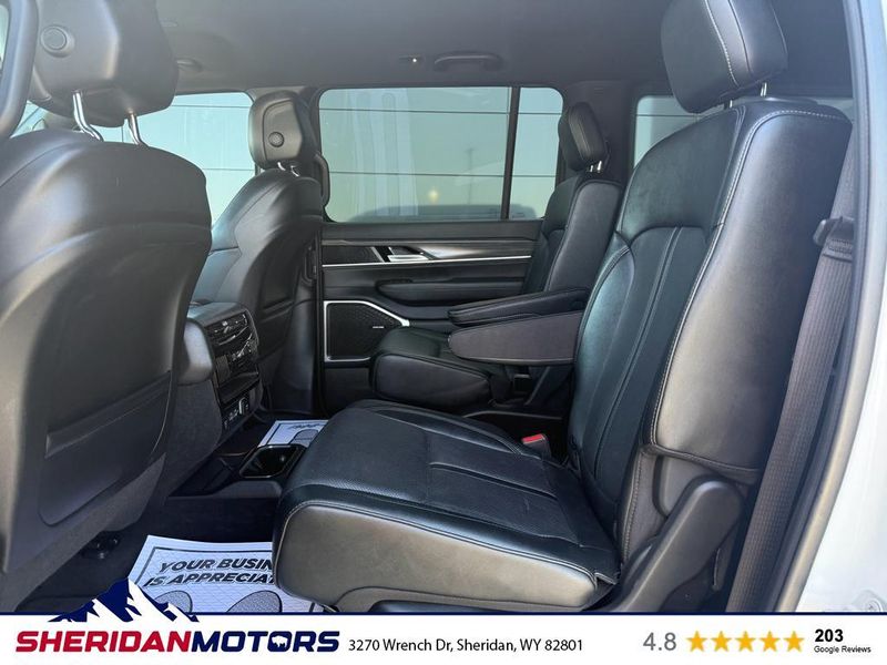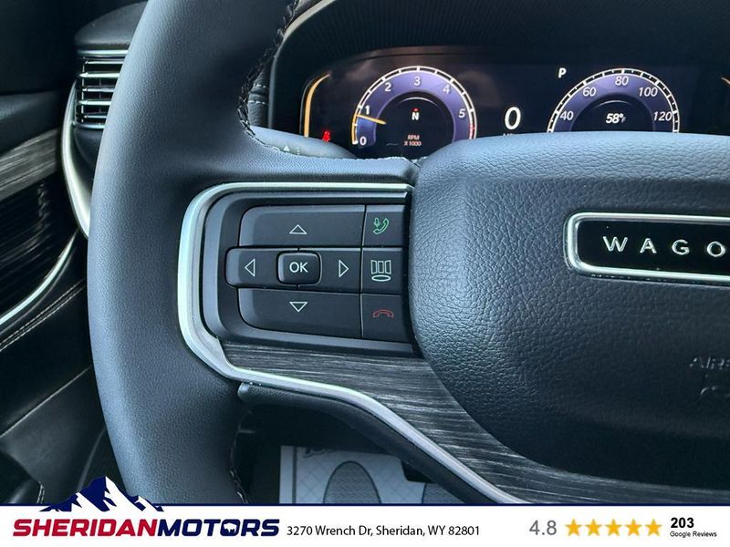The leather seats in it are a must for buyers looking for comfort, durability, and style. Good News! This certified CARFAX 1-owner vehicle has only had one owner before you. Keep your hands warm all winter with a heated steering wheel in this 2024 Jeep Wagoneer . The Jeep Wagoneer's Forward Collision Warning system alerts the driver to potential front-end collisions, enhancing safety. This unit has automated speed control that adjusts to maintain a safe following distance, enhancing highway driving convenience. See what's behind you with the back up camera on this unit. Our dealership has already run the CARFAX report and it is clean. A clean CARFAX is a great asset for resale value in the future. This model is equipped with the latest generation of XM/Sirius Radio. You'll never again be lost in a crowded city or a country region with the navigation system on this unit. This 2024 Jeep Wagoneer features a hands-free Bluetooth phone system.