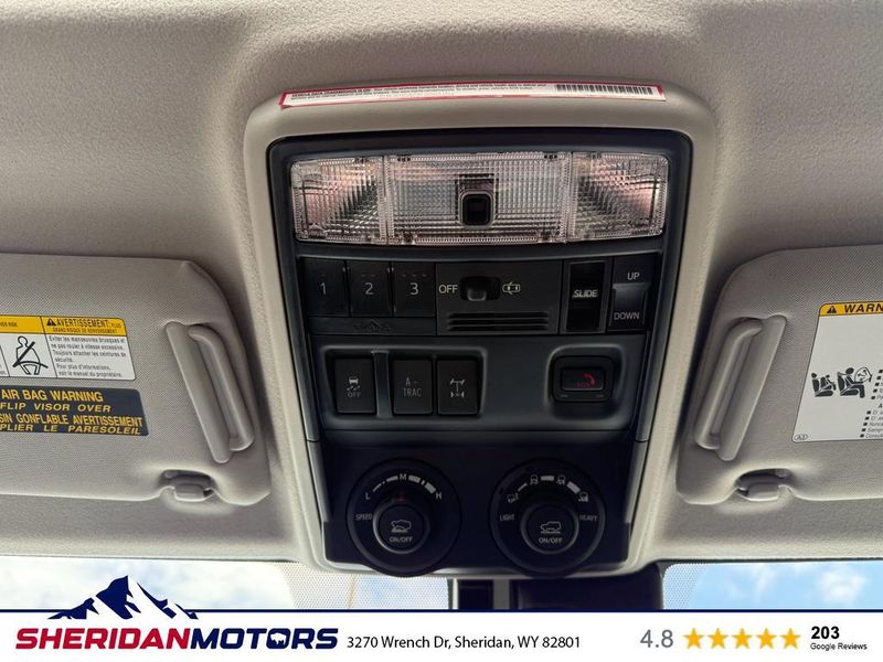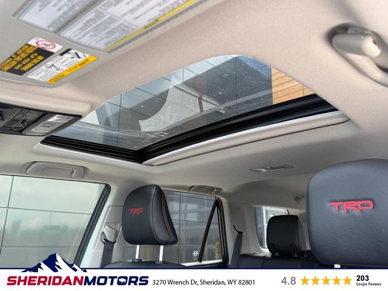 TRD Pro Package: TRD Shift Knob; TRD Pro Badging; Dual Zone Auto Climate Control; Roof Rack; Heated Outside Rear View Mirrors; Garage Door Opener; TRD Pro All Weather Floor Liner; Wheel Locks; Skid Plate; Multi-Terrain Back Monitor; SofTex Seat Trim; Black Lug Nuts; TRD Pro Exhaust; Moonroof with Tilt Up and Slide; Fog Lights; Fox Shocks. Predator Tube Step. Blackout Emblem Overlays. Front Dual USB Power Port Charger. **Equipment listed is based on original vehicle build and subject to change. Please confirm the accuracy of the included equipment by calling the dealer prior to purchase.**