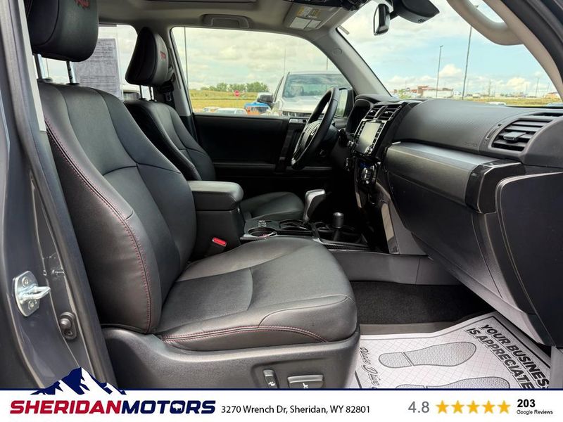 It offers Automatic Climate Control for personalized comfort. Bluetooth technology is built into the Toyota 4Runner, keeping your hands on the steering wheel and your focus on the road. This Toyota 4Runner has a clean CARFAX vehicle history report. This vehicle warns of approaching vehicles with Cross-Traffic Alert. This Toyota 4Runner offers Apple CarPlay for seamless connectivity. The vehicle offers Android Auto for seamless smartphone integration. The leather seats in it are a must for buyers looking for comfort, durability, and style. See what's behind you with the back up camera on this model. The Toyota 4Runner enhances safety with a blind spot monitor, alerting drivers to potential dangers in adjacent lanes. Keep your hands warm all winter with a heated steering wheel in this model . You'll never again be lost in a crowded city or a country region with the navigation system on the Toyota 4Runner. This vehicle is a certified CARFAX 1-owner.