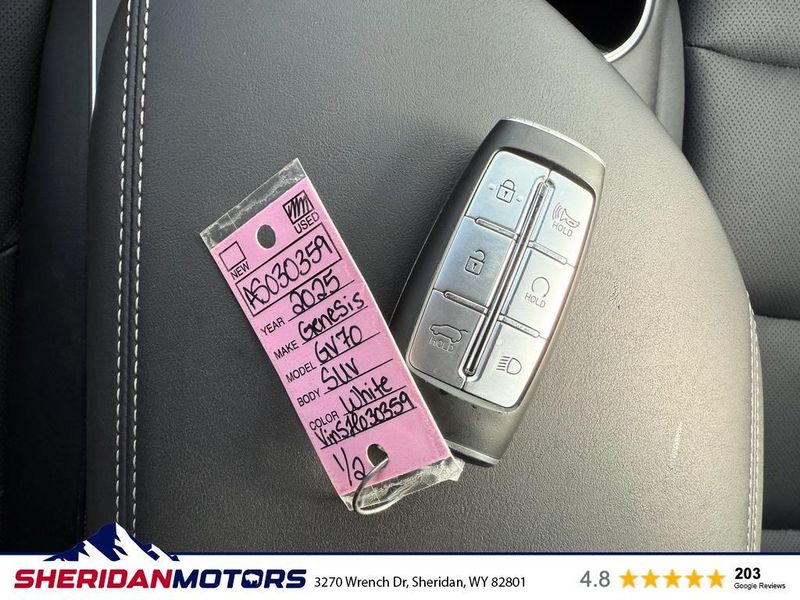 Discover the perfect blend of luxury and performance with this 2025 Genesis GV70 2.5T, now available with just 11,665 miles. This sleek SUV offers a sophisticated driving experience with its AWD system and robust 4-cylinder, 2.5L engine, ensuring you?re ready for any road condition. Step inside to experience a world of technology and comfort. Enjoy seamless connectivity with Android Auto and Apple CarPlay, allowing you to access music, navigation, and calls with ease. The crystal-clear sound of XM Radio keeps every journey entertaining, no matter the distance. Enhance your peace of mind with the integrated rear parking sensors and back-up camera, providing added confidence in tight spots and busy parking lots. The Genesis GV70 is renowned for its refined design and attention to detail, making it a standout in any setting. Its plush interior and intuitive controls create a driving environment that is both comfortable and functional. Whether you?re navigating city streets or exploring the great outdoors, this Genesis GV70 is equipped to elevate your driving experience. Don?t miss the chance to own this exceptional vehicle that combines advanced features, low mileage, and the renowned quality of Genesis engineering.